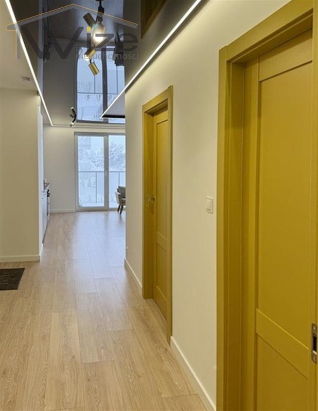 Pokój dzienny z aneksem kuchennym + 2 sypialnie + łazienka z toaletą + przedpokój. Z jednego z pokoi wyjście na narożny BALKON. Kuchnia w aneksie, zabudowana na wymiar, kompletnie wyposażona (zmywarka, lodówka, zamrażarka, płyta grzewcza, piekarnik, pochłaniacz powietrza... itp.). Łazienka cała w kafelkach, z kabiną prysznicową, łącznie z wc. Stolarka okienna PCV. W zależności od pomieszczeń na podłogach panele bądź kafle. Ściany wycekolowane i malowane.